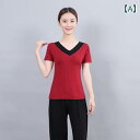 レディース エクササイズ パンツ ダンスウェア エクササイズウェア ヨガ ウェア ラウンドネック 半袖 Tシャツ バレエ トップス スクエアダンス エアロビクス