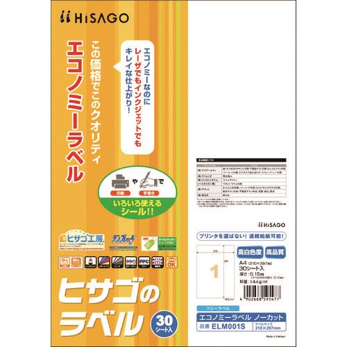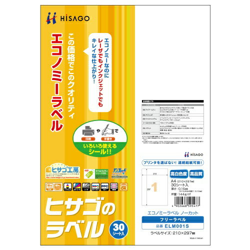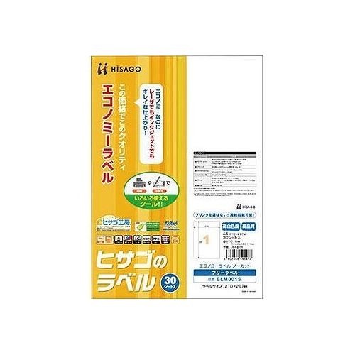 ヒサゴ|HISAGO 〔各種プリンタ〕エコノミーラベル ノーカット 0.10mm ELM001S [A4 /30シート /1面]