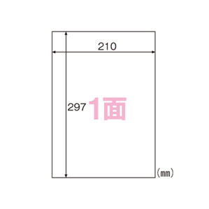 スペック* 規格:A4判1面* 1片寸法:縦297×横210mm* 紙種:上質紙* 総紙厚:0.15mm* 対応プリンタ:熱転写、モノクロレーザー、カラーレーザー、インクジェット(染料、顔料)、モノクロコピー、カラーコピー