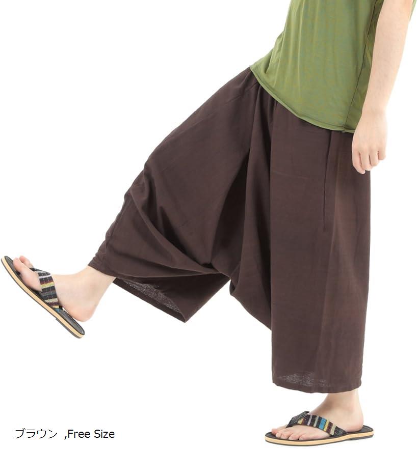 OKI オキ ガウチョパンツ 袴パンツ ワイドパンツ メンズ エスニック サルエルパンツ スカンツ タイパンツ ブラウン (ブラウン, Free Size)