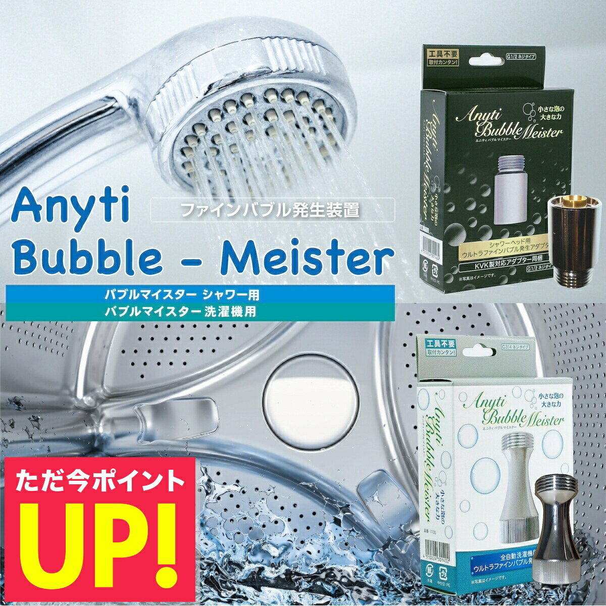 簡単取付で洗浄力、消臭力アップ!小さな泡の大きな力、ウルトラファインバブルで新次元の洗浄体験【バブルマイスターシャワー用】ナノサイズの泡で皮脂・毛穴汚れ、加齢臭に!バブルマイスターは毛穴よりも小さいナノサイズの泡(ウルトラファインバブル)を発生させる機器で、皮脂や毛穴汚れをすっきりと取り除くことができる工具不要の簡単取付でご使用いただけるシャワー用アダプターです。通常の泡に比べて約2万分の1という極小サイズの泡が毛穴の間に入り込み、汚れや臭いの元をかき出し、お肌の健康を保つことができます。また、極小の泡は温浴効果も見込めるため、手足の冷え対策にもおすすめです。【こんな方にオススメ!】■毛穴の広がりが気になる■手足の冷え対策に■抜け毛が気になる■シャワーヘッドを替えるのは抵抗がある【バブルマイスター洗濯機用】ナノサイズの泡で洗浄力・消臭力アップ!バブルマイスターは毛穴よりも小さいナノサイズの泡(ウルトラファインバブル)を発生させ、衣類に付着した汚れやニオイのもとに吸着して洗い流すことができる洗濯機用アダプターです。通常の泡に比べて約2万分の1という極小サイズの泡が繊維の間に入り込み、汚れや臭いの元をかき出し、衣類を清潔に保つことができます。さらに、極小の泡は洗濯槽の汚れ残り・洗剤残り・ヌメリ・黒カビを洗濯するたびに除去するので、洗濯機も綺麗に保つことができ、洗濯機のお手入れもラクになる便利アイテムです。【こんな方にオススメ!】■部屋干しの生乾きの匂いが気になる■洗濯物の黄ばみに苦戦している■汚れ落ちが気になって洗剤を多く使ってしまう■洗濯槽のお手入れが大変で困っている使用上の注意・シャワー用※ファインバブルの発生には0.1Mpa以上の水圧を推奨いたします。※バブルマイスターシャワー用はG1/2のネジ山のシャワーヘッドに適合します。※シャワーヘッドのネジ穴が変形していたり、障害物があると取付できない事があります。特殊な形状をしたシャワーヘッドには適合しない場合がございますので事前にご確認ください。4.KVK製シャワーヘッドをご使用の場合は、別途同梱の変換アダプタをご使用ください。5.ガスター製のシャワーヘッドをご使用の場合、水圧が低い場合が多い為、推奨しておりません。・洗濯機用※全自動洗濯機で給水口がネジ込み式(G3/4)タイプに対応しています。※二槽式洗濯機には使用できません。※洗濯機給水口のネジ山は樹脂製のため、ネジ山を破損しないよう慎重に調整しながら締め込んでください。※取り付けたら、洗濯をする前に洗濯物を入れないで試運転をして水漏れ等がないかご確認ください。・・・・商品詳細・・・・商品名Anythi Bubble-Meister(エニティ バブルマイスター)・シャワー用本体寸法(約)直径2.5 × 高さ4cm重量(約)75g本体材質真鍮(クロームメッキ)プレート材質ポリプロピレンパッキンNBR同梱内容保証書、取扱説明書製造国日本販売元株式会社富士計器・・・・商品詳細・・・・商品名Anythi Bubble-Meister(エニティ バブルマイスター)・洗濯機用本体寸法(約)直径3 × 高さ6cm重量(約)156g本体材質真鍮(クロームメッキ)プレート材質ポリプロピレンパッキンNBR同梱内容保証書、取扱説明書製造国日本販売元株式会社富士計器関連商品極楽かた?ゆ サンコー かたーゆ 簡単 後付け THANKO LGSD...【当店限定★特典!】正規品 フットグルーマー グラン 日本製 フットブ...小型洗濯機 省スペース型マルチ洗濯機 ファミラ バケツ型 簡易洗濯機 ...15,800円9,130円10,800円【感謝祭ポイントアップ!〜11/16 23:59】遮熱レースカーテン ...【感謝祭ポイントアップ!〜11/16 23:59】オムニ シルクフェイ...【感謝祭ポイントアップ!〜11/16 23:59】羽毛ふんわり 腰のふ...9,810円9,990円9,900円