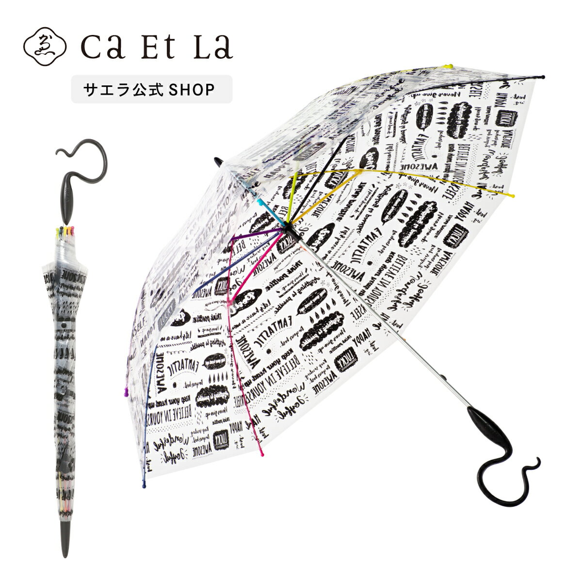 《P10倍!15日00:00~15日23:59まで》【サエラ公式】メッセージ プリントビニール傘 \おしゃれなビニール傘/ カラフル おしゃれ エコ ビニール傘 かさ 傘 雨傘 レディース ビニール エバーイオン Evereon サエラ caetla イラスト 風に強い 丈夫 女の子