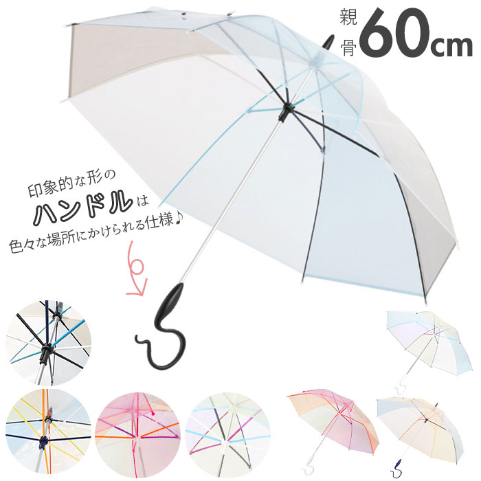 ビニール傘 オシャレ 通販 可愛い おしゃれ 傘 ビニール 透明 カラー かさ レディース エバーイオン Evereon 60cm 傘骨 親骨 樹脂素材 風に強い さびにくい 錆びにくい 着せ替え 機能的 ハンドル 長傘 雨傘 男女兼用 ユニセックス 女性用 婦人用 男性用 紳士用 男女兼用雨傘
