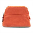 【中古】エルメス ボリードポーチミニ キャンバス ポーチ オレンジ シルバー金具