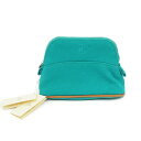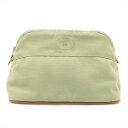【中古】エルメス ボリードポーチMM キャンバス ポーチ グリーン シルバー金具