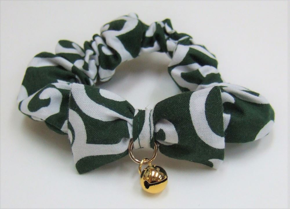 コットン生地で作った猫用首輪猫専用のリボンと鈴の付いた可愛いシュシュです!適応サイズ(首囲):160〜240mm・生産地:日本・素材:綿