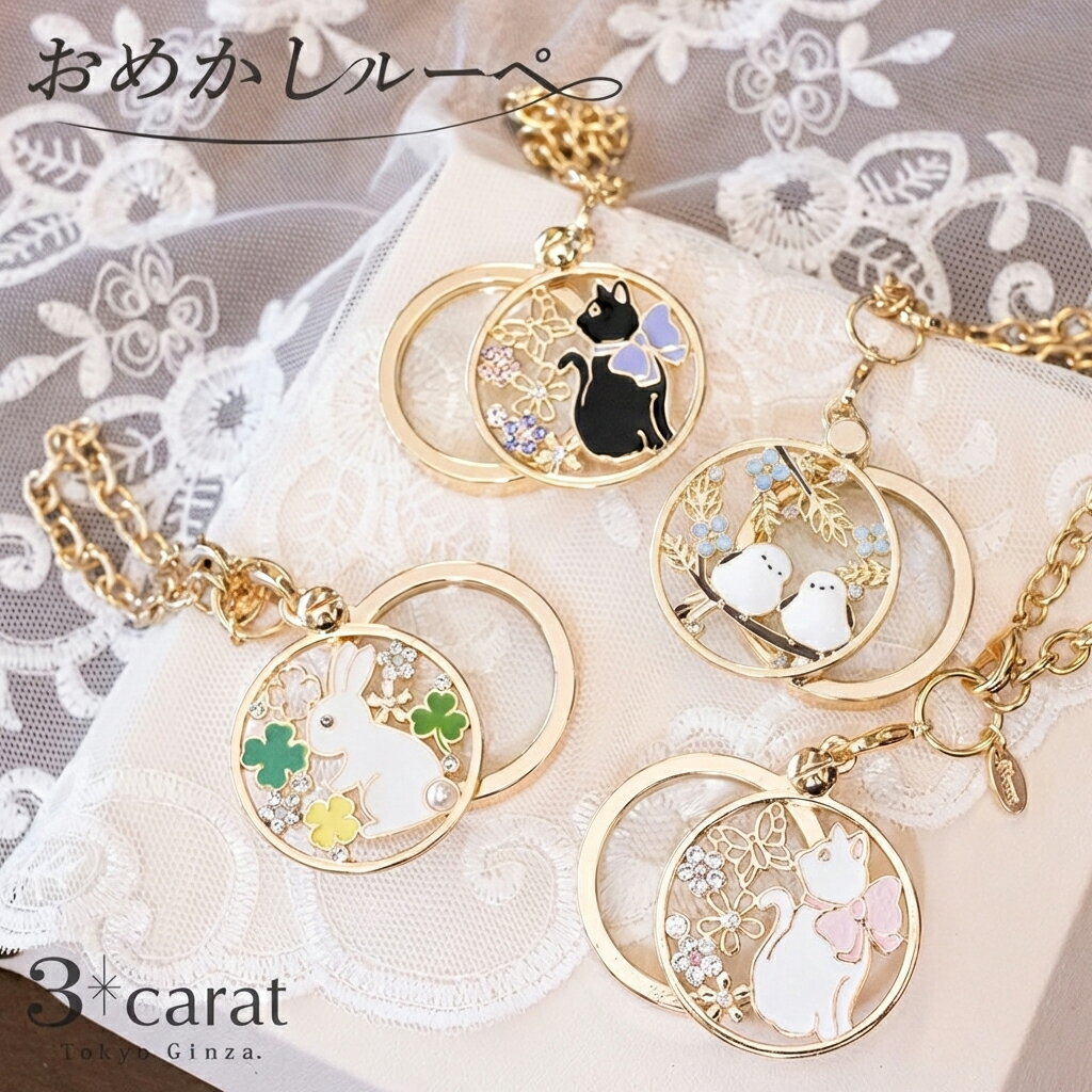 おめかしルーペ 拡大鏡 おしゃれ ルーペ バッグチャーム 倍率3倍 スライド式 手持ち バッグ 猫 ねこ ネコ 梟 シマエナガ うさぎ クローバー 幸運 人気 おしゃれ かわいい キラキラ 上品 エレガント レディース 女性 バレンタイン プレゼント ギフト 3carat スリーカラット
