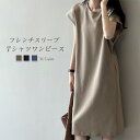 Tシャツワンピース レディース 半袖 春 夏 春夏 ロングTシャツ カットソー 無地 クルーネック フレンチスリーブ エレガント シンプル ブラック ベージュ 大きいサイズ 大人カジュアル コーデ ファッション 夏服 体型カバー リラックス 30代 40代 50代 送料無料