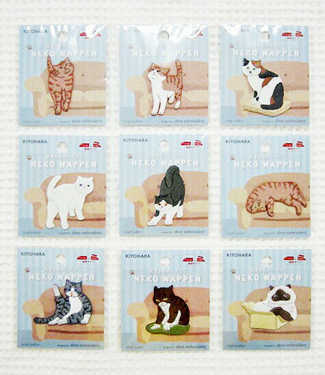 ●シール&アイロン接着ワッペン/気ままなポーズの【猫ワッペン】アップリケ/入園入学/ねこ/茶トラ/キジブチ/ミケネコ/白ねこ/黒ブチ/サバトラ/キジトラ/ヒマラヤン/ahoy embroidery/アホイ エンブロイダー/清原/KIYOHARA/