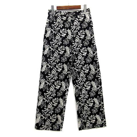 【中古】ザラ ZARA ボタニカル エンブロイダリー ワイドパンツ 総柄 刺繍 ブラック 黒 S レディース 【ベクトル 古着】 250911