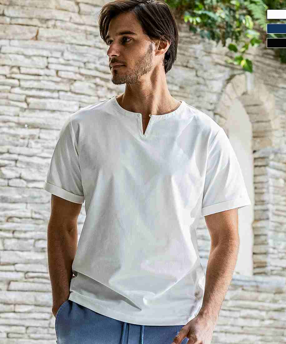 AKM Contemporaryから、シアサッカー素材を使用したキーネックシャツが登場。首元はすっきりと開いたキーネック仕様で、自然体のこなれた印象を演出。程よくワイドな身幅と七分袖がリラックス感を高め、シンプルながらも存在感のある佇まいに。凹凸のあるシアサッカー生地は速乾性に優れ、真夏の太陽の下でもさらっとした快適さが続きます。ストレッチ性も備え、動きすさも叶えたストレスフリーな着心地です。またシワになりにくく、お手入れも簡単◎ショーツと合わせてリゾートに、スラックスと合わせて街着にも対応。シーンを問わず活躍する、夏のワードローブに欠かせない万能シャツです。[型番:ASH-25002W]■カラー:blue、black、white、beigeS 約(着丈68 肩幅47 身幅55 袖丈45)cmM 約(着丈70 肩幅49 身幅57 袖丈46)cmL 約(着丈72 肩幅49 身幅59 袖丈47)cmXL 約(着丈74 肩幅51 身幅61 袖丈48)cmXXL 約(着丈74 肩幅53 身幅63 袖丈49)cmMODEL H185 C95 W75 H94 着用サイズ:L※( )で表記されている数字はヌードサイズです。ヌードサイズとは衣服を身につけない身体のサイズです。お客様ご自身の身体サイズと比較してお選びください。 ■素材: ポリエステル100%、 ポリウレタン3% ■お手入: >>商品のお取り扱い方法 ■原産国:AKM Contemporary キーネックプルオーバーシャツ(シアサッカー / 防シワ)/エイケイエム コンテンポラリー(AKMContemporary)blueblackwhitebeige画面上と実物では、多少色具合が異なって見える場合がございます。