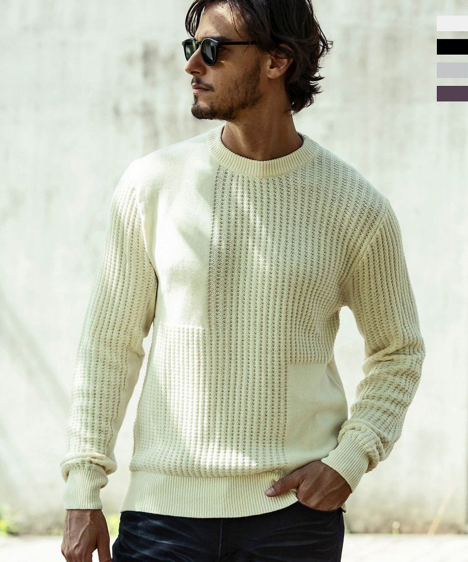 【直営店・WEB限定】AKM Contemporaryブロッキングプルオーバーコットンカシミヤニット/エイケイエム コンテンポラリー(AKMContemporary)