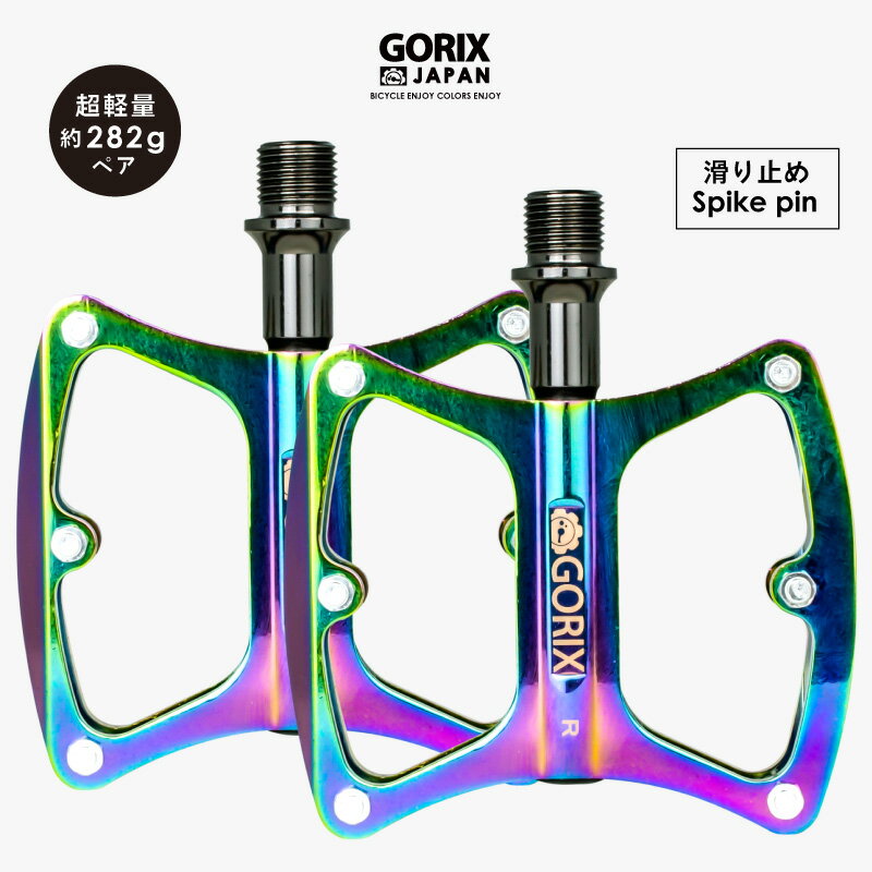 【送料無料】ゴリックス ペダル 自転車 ロードバイク フラット オイルスリック 軽量 アルミ スパイクピン 自転車ペダル おしゃれ クロスバイク MTB ペダル交換 フラットペダル GORIX(GX-FY001)