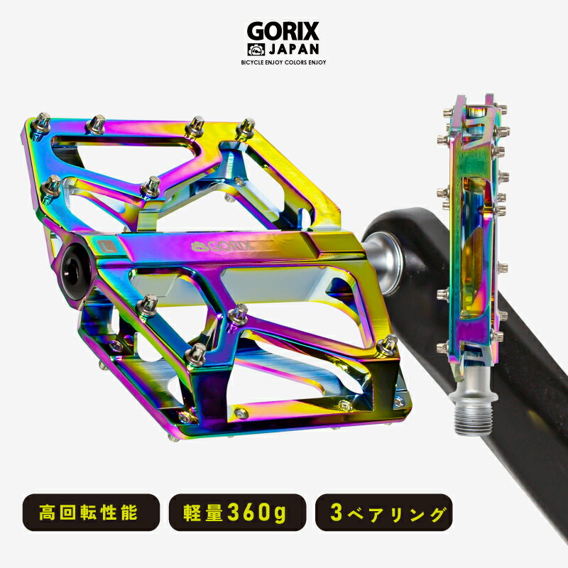 【送料無料】GORIX ゴリックス フラットペダル オイルスリック 自転車 ペダル (GX-FX181) 軽量 アルミ CNC 高回転 滑らか 3ベアリング 滑り止め ピン付き おしゃれ ペダル交換 ロードバイク クロスバイク等