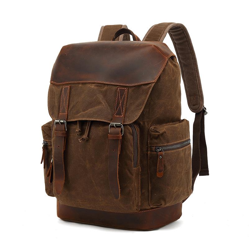 リュック メンズ オイルドキャンバス 帆布 クレイジーホースレザー 本革 防水 耐摩耗性 大容量 登山 旅行 アウトドア 普段使い ビジネス カジュアル 15インチPC収納 レトロ クラシック ブラウン カーキ グレー