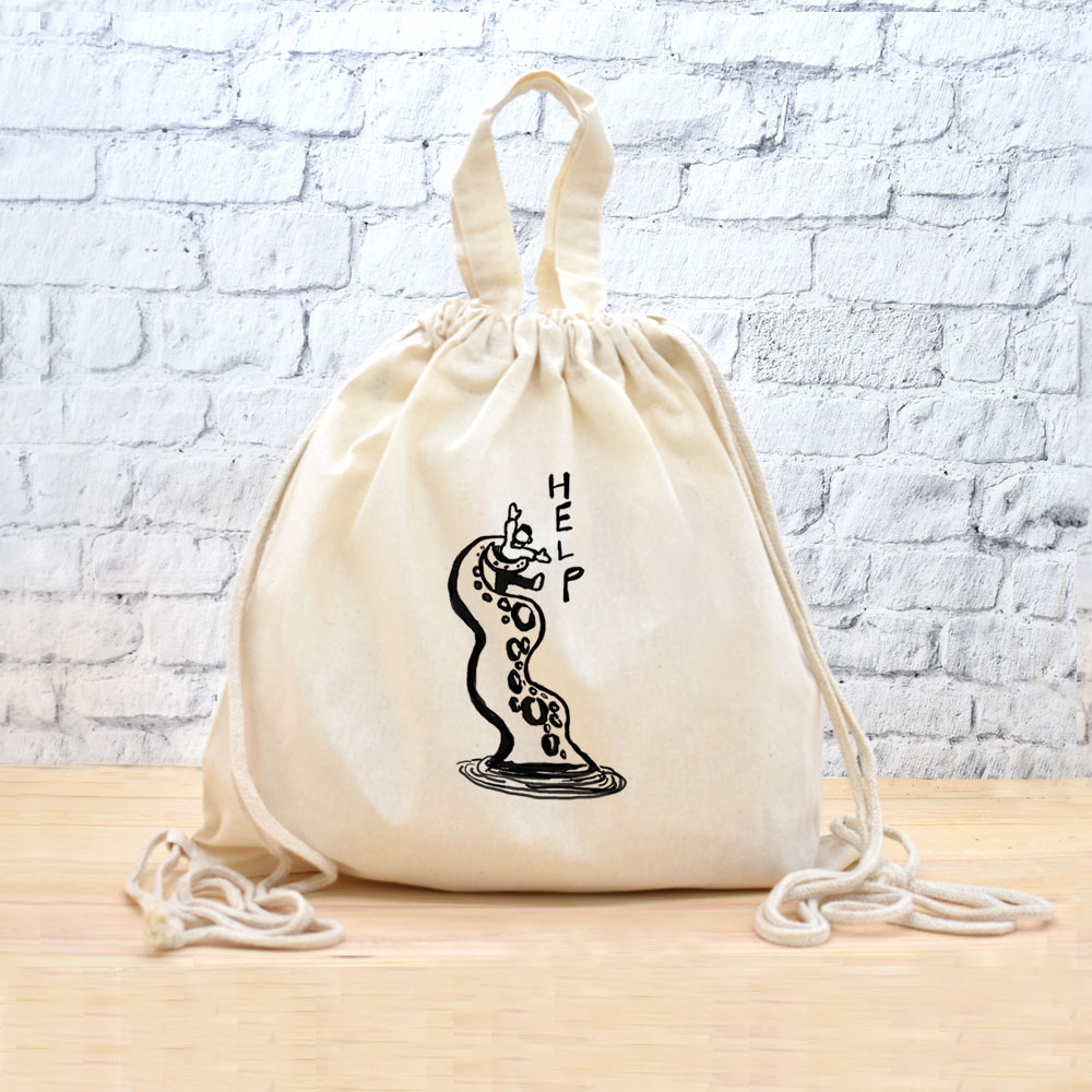 【即納 名入れ無し】 巾着袋 大 38×28cm [ 蛸足 ] たこ タコ オクトパス 大蛸 オオダコ 巨大タコ クラーケン 軟体動物 魚 釣り 動物 釣り好き 水族館 おもしろ 面白 おしゃれ ナチュラル オーガニックコットン 男の子 女の子 小学生 中学生 高校生 父の日 母の日 ブランド