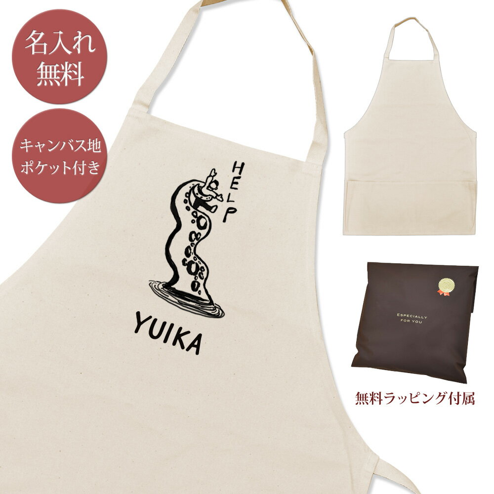 【名入れ無料】 エプロン 首掛け ポケット付き [ 蛸足 ] たこ タコ オクトパス 大蛸 オオダコ 巨大タコ クラーケン 軟体動物 魚 水族館 グッズ おもしろ 面白 ギフト プレゼント メンズ レディース ナチュラル キャンバス地 ブランド ラッピング ココロコ 母の日 父の日