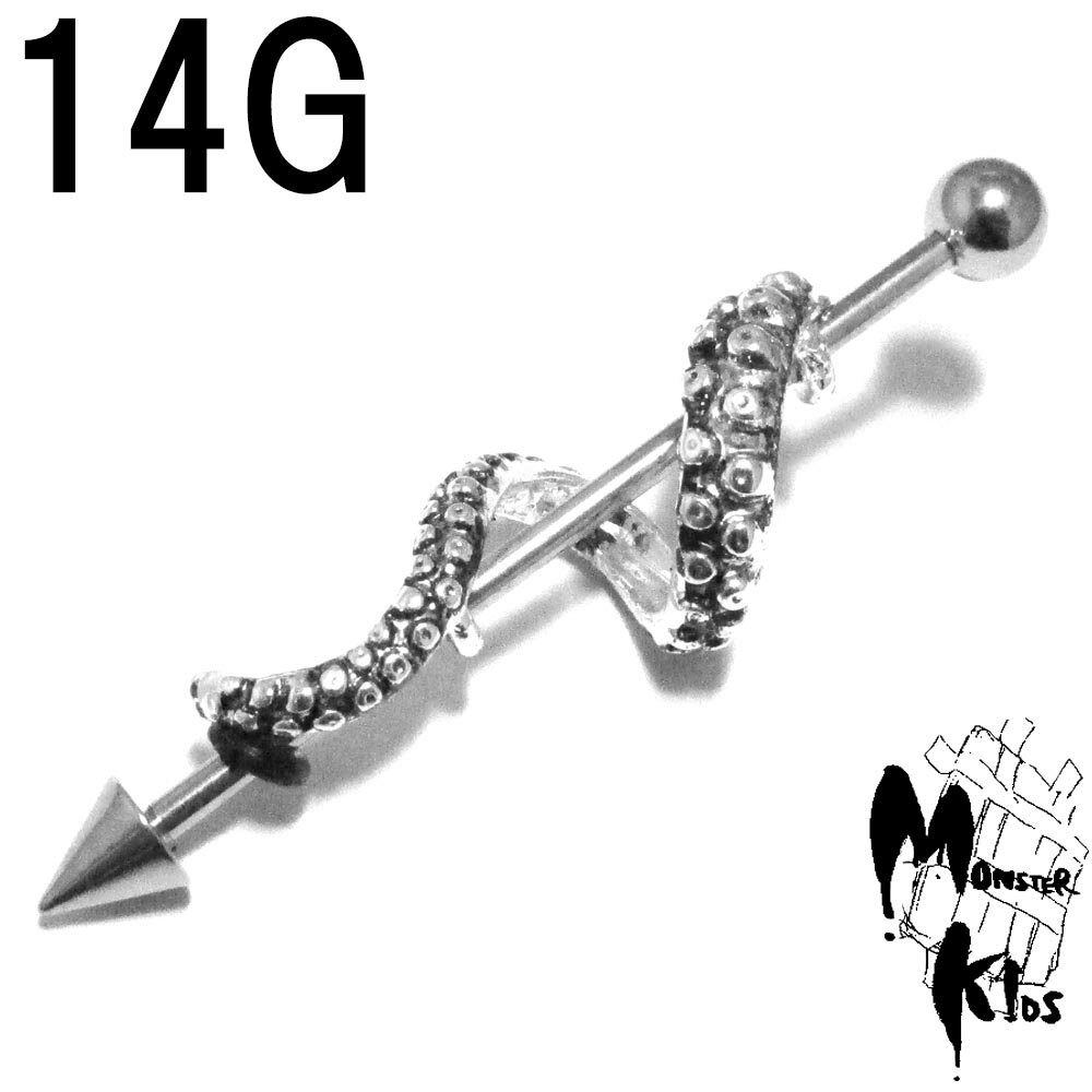 ボディピアス 大蛸!立体オクトパス(Octopus・タコ)インダストリアル バーベル【14G(1.6mm)/約38mm】BP-ID53 軟骨 つなぐ オオダコ ボディーピアス ヘリックス ロングバーベル/海の生物/海賊/316Lサージカルステンレス/10P05Nov16