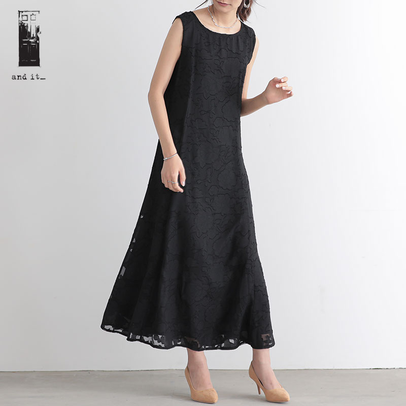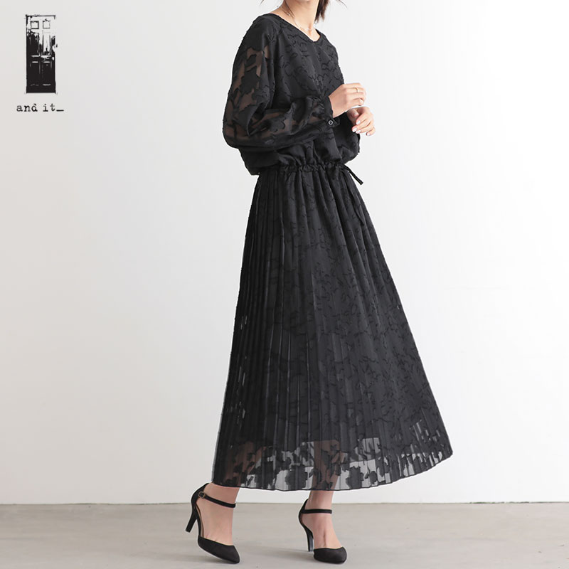 【クーポン利用で14630円!】レディース ワンピース ドレス flocky dot one piece ANDRESD アンドレスド ロングワンピース フロッキー ドット シアー 半袖 ペンシルスカート セレモニー オケージョン パーティー フォーマル 結婚式 二次会 普段使い ドノバン