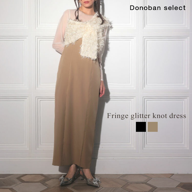 レディース ワンピース フリンジ ドレス ANDRESD アンドレスド グリッター ノット 長袖 ラメ シアー Iラインスカート スリット Donoban|セレモニー オケージョン パーティー フォーマル 結婚式 二次会 普段使い ドノバン