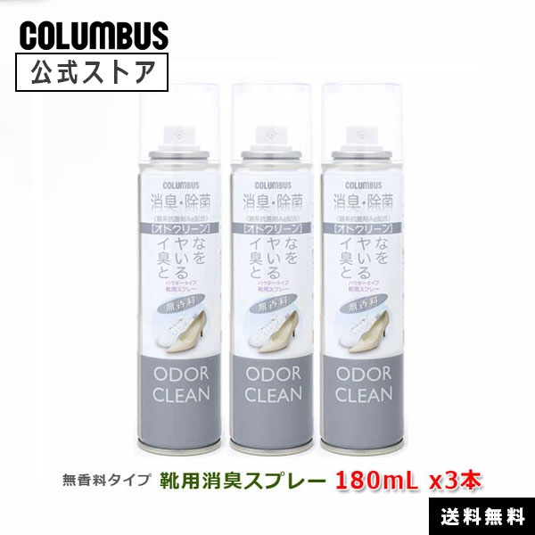 【ポイント5倍】 【送料無料】コロンブス オドクリーンスリム 無香料タイプ 180mL x3本セット Ag(銀)配合 靴用 消臭 除菌スプレー ムレ 臭い 雨 消臭スプレー 靴 くつ ブーツ ゲリラ豪雨 雪