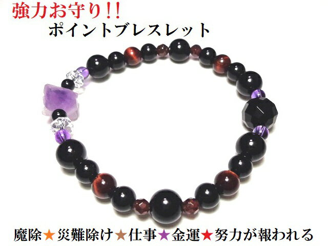 魔除・災難除け・対人トラブル回避・仕事・出世・努力が報われる・ギャンブル運・金運・恋愛成就★ブレスレット★アメジスト原石・アメジストポイント・オニキス・ガーネット・レッドタイガーアイ・水晶★パワーストーン★護符(霊符)