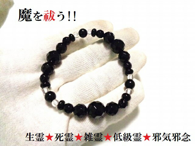 男女兼用★予防にも( ゜Д゜)★魔を祓うブレスレット★生き霊★魔除・悪霊・死霊・雑霊・低級霊・悪霊退散・邪気邪念・妬み・不運にも★ブレスレット★オニキス・モリオン・水晶★パワーストーン★護符(霊符)