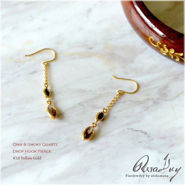 【数量限定】ピアス K18 レディース 女性 アクセサリー 18金 k18 ゴールド オニキス・スモーキークオーツ ドロップ イエローゴールド フックピアス 雫 しずく 華奢 きれいめ 大人可愛い (RERALUy) 自分買い ご褒美 贈答 人気 送料無料 rpe1157