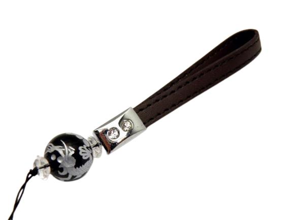 携帯ストラップ オニキス・龍銀彫り (合皮茶ひも) 龍 約16mm 天然石 パワーストーン / インペリアルオーラ おしゃれ かわいい オシャレ 可愛い プレゼント ギフト 贈り物