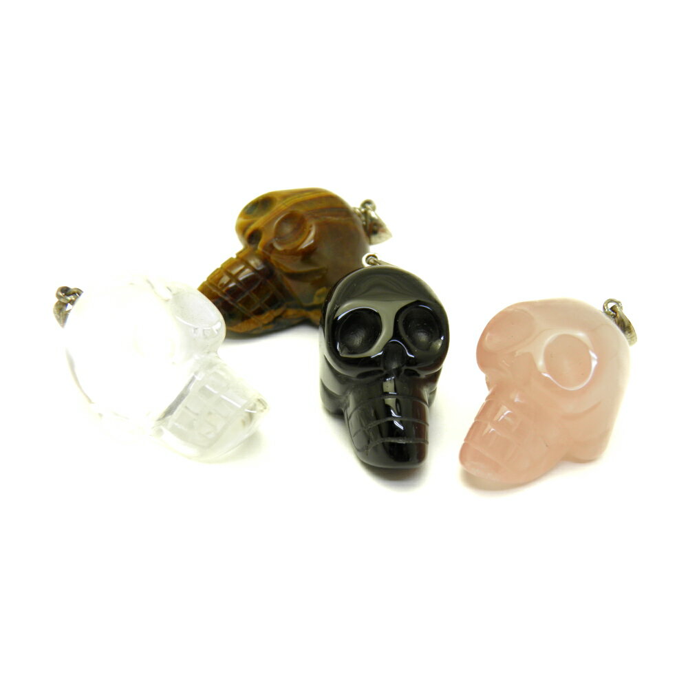選べる4種類 ドクロ ペンダントトップ 髑髏(スカル) オニキス・水晶・タイガーアイ・ローズクォーツ 天然石 パワーストーン / インペリアルオーラ おしゃれ かわいい オシャレ 可愛い プレゼント ギフト 贈り物
