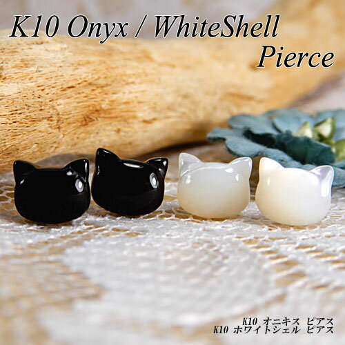 『ジュエリークイーン』【あす楽】イエローゴールド (K10YG) オニキス・ホワイトシェル ピアス(猫/黒猫/白猫/ネコ/ねこ/アニマル/動物/白蝶貝/8月誕生石)【宝石 ジュエリー】【プレゼント】*