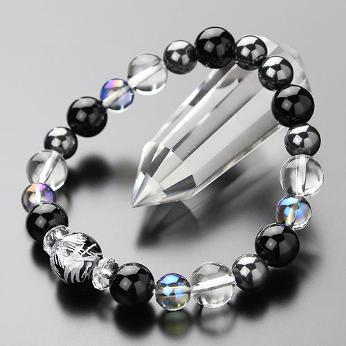 干支(十二支)により決まっている守護仏の守り本尊様!ご本尊と梵字を両面に彫り、因縁の浄化・健康・財産・幸運を守護してくれるお守りブレスレット干支(十二支)により決まっている守護仏の守り本尊様!ご本尊と梵字を両面に彫り、因縁の浄化・健康・財産・幸運を守護してくれるお守りブレスレット 八尊仏守護ご本尊様 オニキス・ブレスレット 干支(十二支)により決まっている守護仏の守り本尊様!「八尊仏守護ご本尊様 オニキス・ブレスレット 」のご紹介です!ご本尊と梵字を両面に彫り、因縁の浄化・健康・財産・幸運を守護してくれるお守りブレスレットです。 【仕様】 八尊仏守護御本尊様・梵字:12mmx1石 オニキス:8mm×16石 虎目石64面カット:8mm×3石 水晶カット:6×3mm×8石 長さ:約 M=18cm、L=19.5cm ●ブレスレット写真は「不動明王(酉年)」です。 それぞれの干支で彫刻水晶玉は変わります。 [水晶] 水晶は総合的な運勢を上昇させる効果があるといわれています。 悪運や負の力を持ったものを浄化したり、清めるパワーを持ち、 そのもの本来の潜在能力を引き出すとされています。 また、組み合わせると他のパワーストーンの 効力を高める力が宿っているともといわれています。 [オニキス] 古代から、「悪霊から身を守る石」とされてきました。 心の不安を取り除き前向きな力を与えてくれるといわれてます。 オニキスは出会いと別れをつかさどる役割を持つ石といわれ、 過去から引きずっている忘れられない思いを断ち切り、 新しい出会いを求める気持ちにさせてくれます。 悪いものを跳ね除け身を守る効果もあるといわれています。