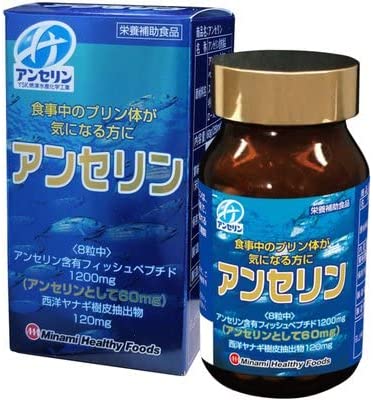 内容量 240粒 原材料 アンセリン含有フィッシュペプチド、乳糖、西洋ヤナギ樹皮抽出物、結晶セルロース、ショ糖エステル 広告文責 株式会社ジャパンフーズ 0166-61-8800 メーカー/区分 ミナミヘルシーフーズ