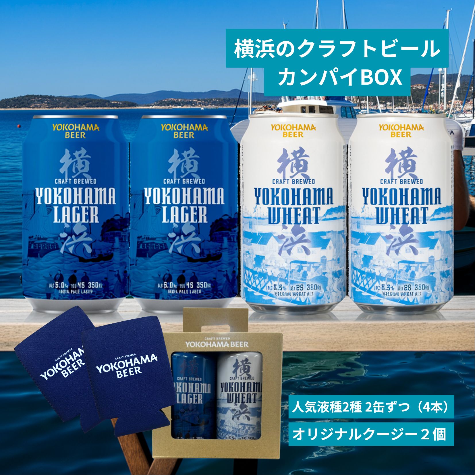 \横浜のクラフトビール 乾杯BOX/ 缶ビール 人気液種2種類オリジナルクージー 2個 セット 350ml×4本 (缶) クラフトビール 飲み比べセット 地ビール 飲み比べ ギフト ビール ご当地ビール 横浜 お土産 ビール 横浜ビール 詰め合わせギフト ビール詰め合わせ ビールのみ比べ