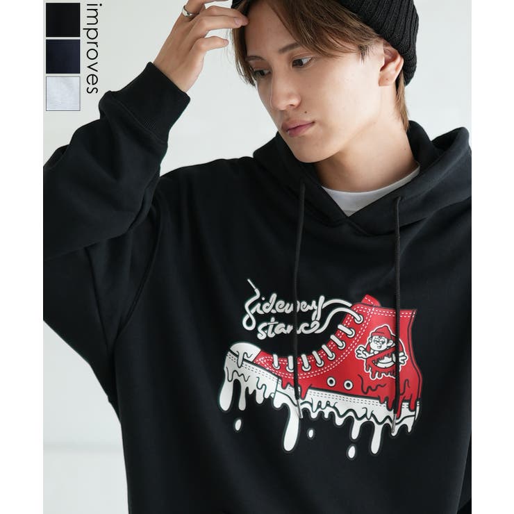 improves パーカー メンズ SIDEWAY STANCE サイドウェイスタンス オリジナルプリント グラフィック スウェット ハイカットスニーカー オーバーサイズ アメカジ カジュアル トップス