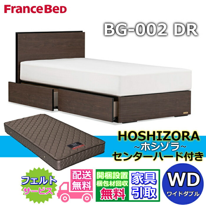 フランスベッド ベッドフレームマットレスセットBG-002 DR ホシゾラ センターハード マットレス付き【開梱組立設置無料】引出付きタイプ 引出付きベッドフレーム超お買い得!! 東京スプリング オリジナルマットレス付き