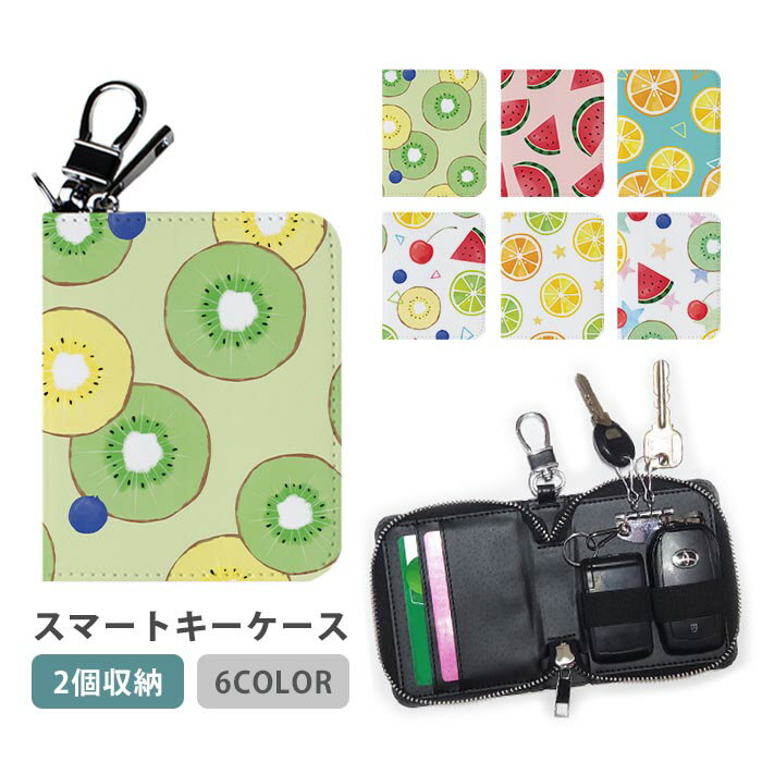 スマートキーケース スマートキー 2個収納 ケース ダブル フルーツ 果物 キウイ オレンジ チェリー レディース メンズ 家の鍵 キーホルダー キーケース カードケース カードキー カード入れ おしゃれ コンパクト 車 通勤 かわいい スリム