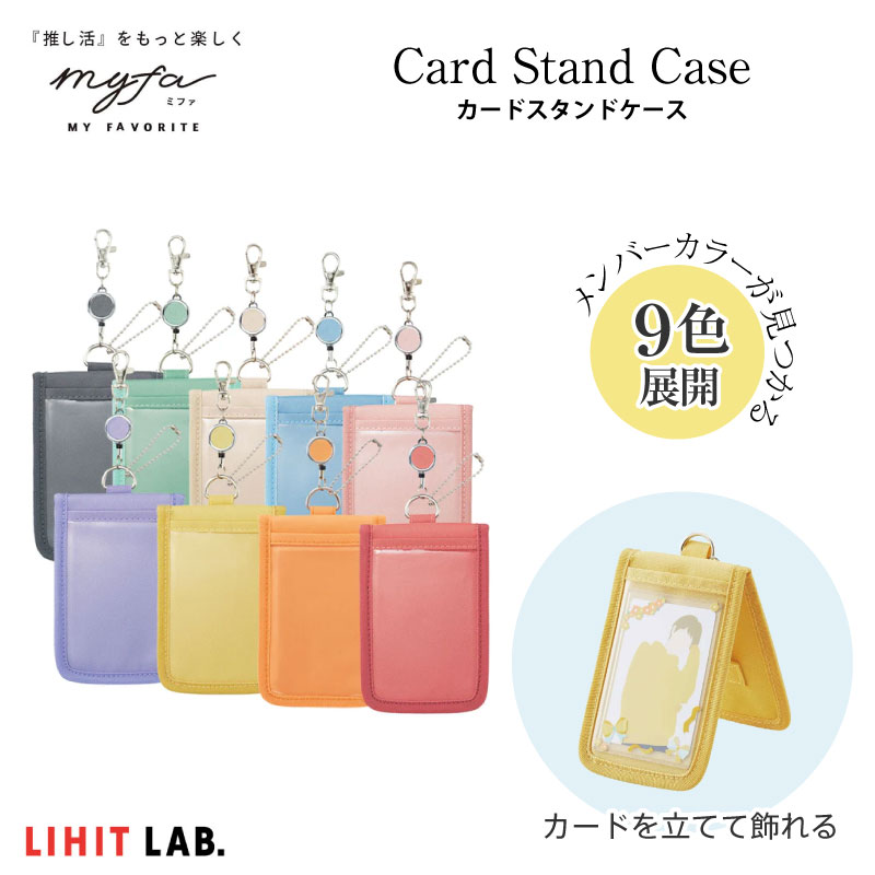 LIHIT LAB リヒトラブ myfa カードスタンドケース 推し活グッズ 推し 収納 整理 コレクション カードケース パスケース ICカード スリム スタンド 自立型 リール付き asuka A-3300 9色 レッド オレンジ イエロー パープル ピンク ブルー ベージュ グリーン ブラック