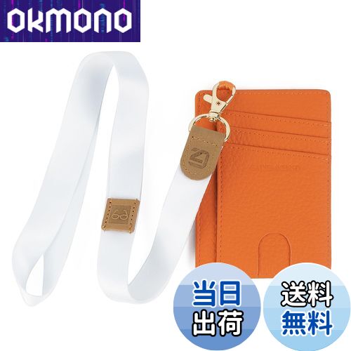 【送料無料】[GADIEMKENSD] カードケース 大容量 メンズ icカードケース 薄型 カード入れ コインケース RFID 本革 磁気防止 クレジットカードケース レディース 小銭 免許証ケース うす型 スリム 小さい財布 オレンジ+ホワイトネックストラップ