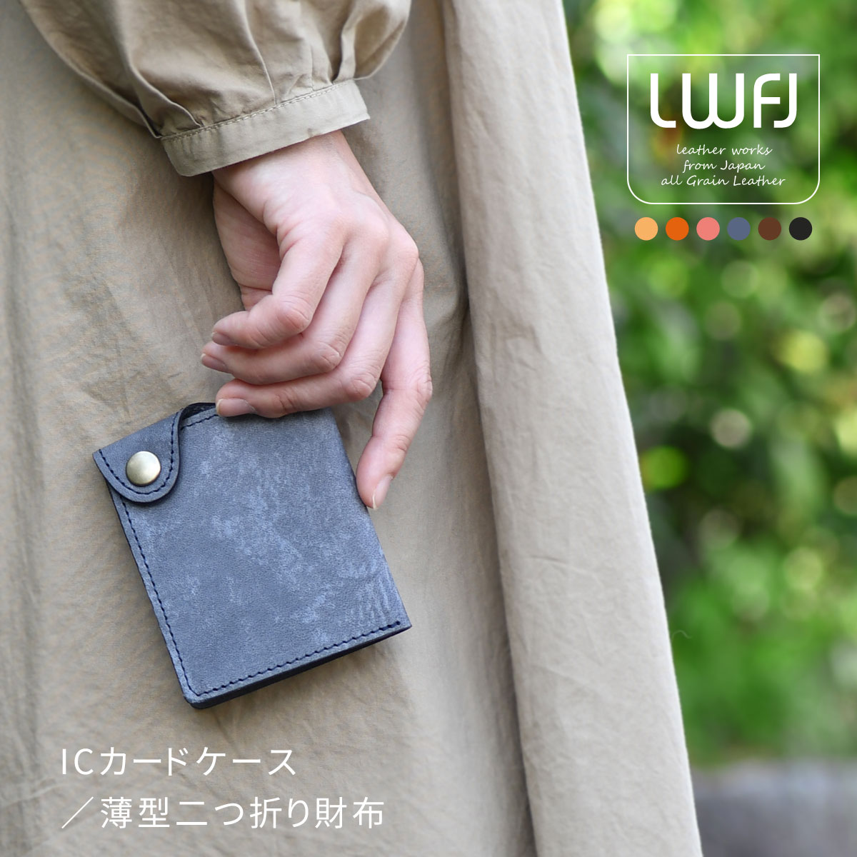 ミニ財布 ICカードケース 二つ折り財布 小銭入れなし 日本製 イタリアンレザー 本革 財布 レディース LWFJ 本革財布 レザー プエブロベリー ヌメ革 薄い 薄型 スリム コンパクト【メール便対応可】※ギフトボックス別売り オレンジ ピンク ブラウン ブラック