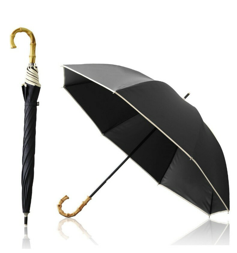 100% 完全遮光 晴雨兼用傘 日傘 長傘 ショートパラソル 親骨50cm UVカット 5cmエッジライン Ombrage UPF50+ 紫外線対策 遮熱加工 梅雨 ゲリラ豪雨 夕立 高強度 水をはじく テフロン加工 超撥水 バンブーハンドル 色:ブラック
