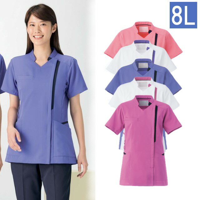 【正規代理店】HS8041 オンワード ナースウェア サイドファスナー スクラブ 女性用 半袖 大きいサイズ オンワード白衣 PHSポケット 制菌加工 静電気帯電防止 ストレッチ 透け防止 防汚 吸水 速乾 形態安定 ONWARD 医療用 看護師 レディース レディス 女子 ジャケット 白衣