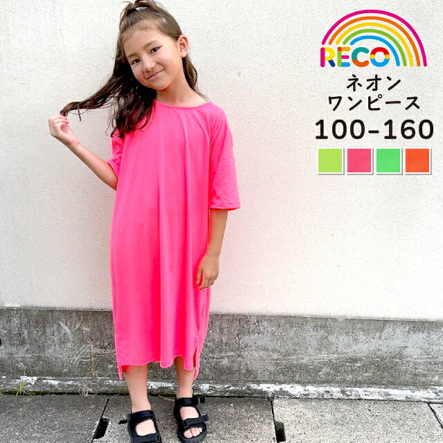 【ネオンワンピース】ビッグシルエット 半袖ワンピース ネオンカラー カラフルカラー 親子コーデ おそろいコーデ 半袖 ネオンt トップス ネオンt こども キッズ ジュニア 女の子 派手 運動会 発表会 イベント m031