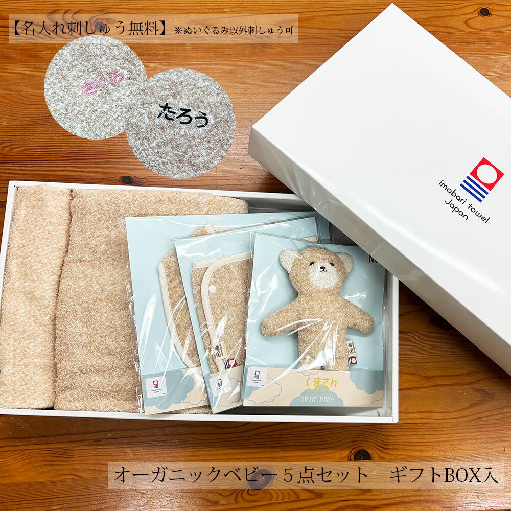 【名入れ刺しゅう無料】オーガニックベビー5点セット 日本製 今治産 オリム コットン オーガニック 今治タオル 新生児 プレゼント 出産祝い バスタオル ベビースタイ フェイスタオル ぬいぐるみ サッキングパッド 【今治ブランド】【レビューで今治タオルプレゼント】