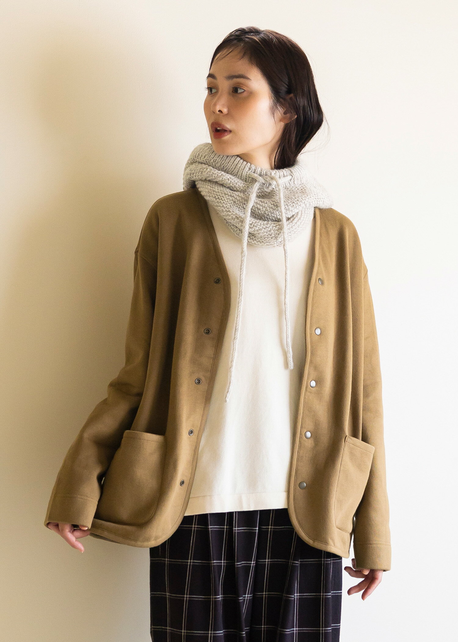 オーガニックコットン を使用した、裏起毛のカットソーシリーズ。あたたかく、ふんわりとしたやさしい肌ざわりが人気です。チクチクが苦手な方にもおすすめ。ボクシーなシルエットのVネックジャケット。カーディガン感覚でさっと羽織れます。縁のパイピング仕立てがアクセントに。ゆったりめのサイズで、打ち合わせも左前にしているので、男女兼用で着られます。 ジャケットとしてきちんとめの装いに。同素材のパンツとセットアップにしても、ルームウェアにもおすすめです。【エシカルポイント】 オーガニックコットンを使用することは、働く人の健康と自然環境を守ることができる持続可能なものづくりです。この商品は、オーガニック・テキスタイル世界基準(GOTS)認証を取得しています。原材料がオーガニックであるだけでなく、生地の生産・加工・保管・流通のすべての過程で環境的・社会的な厳しい基準を満たしています。●●スナップボタン/オーガニックコットン100%/アシシ・ガーメンツ/インドより※画像は、撮影時の光の当たり具合や、パソコン・スマートフォンの環境により、実際の色味と違って見える場合があります。M:身丈69.5 バスト121 裄丈80cm L:身丈71.5 バスト127 裄丈81.5cm※ラッピングをご希望の方は こちら よりラッピングサービス(税込550円)をご追加ください。