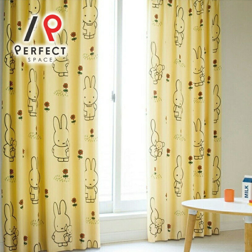 ミッフィー カーテン 1級遮光 遮光カーテン 99.99% おしゃれ 洗える 防炎 オーダーカーテン オーダー 2枚セット 1枚 国内縫製 子供 キッズ 女の子 女子 娘 イエロー