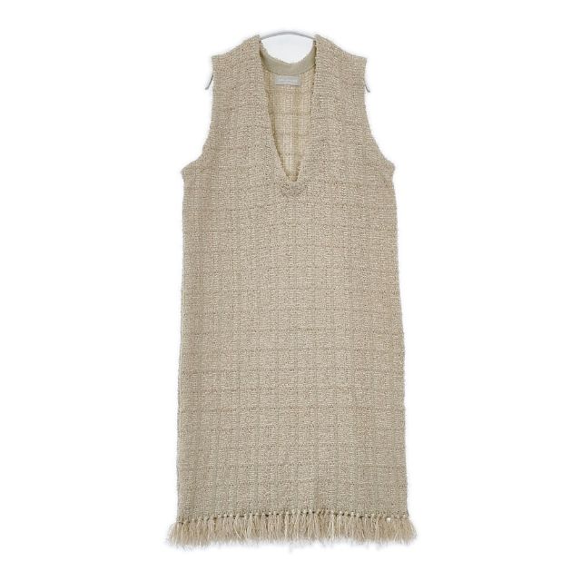 audrey and john wad ツイードチェック柄ジャンパースカート H9752 ノースリーブ ワンピース ベージュ レディース オードリーアンドジョンワッド【中古】6-0124T