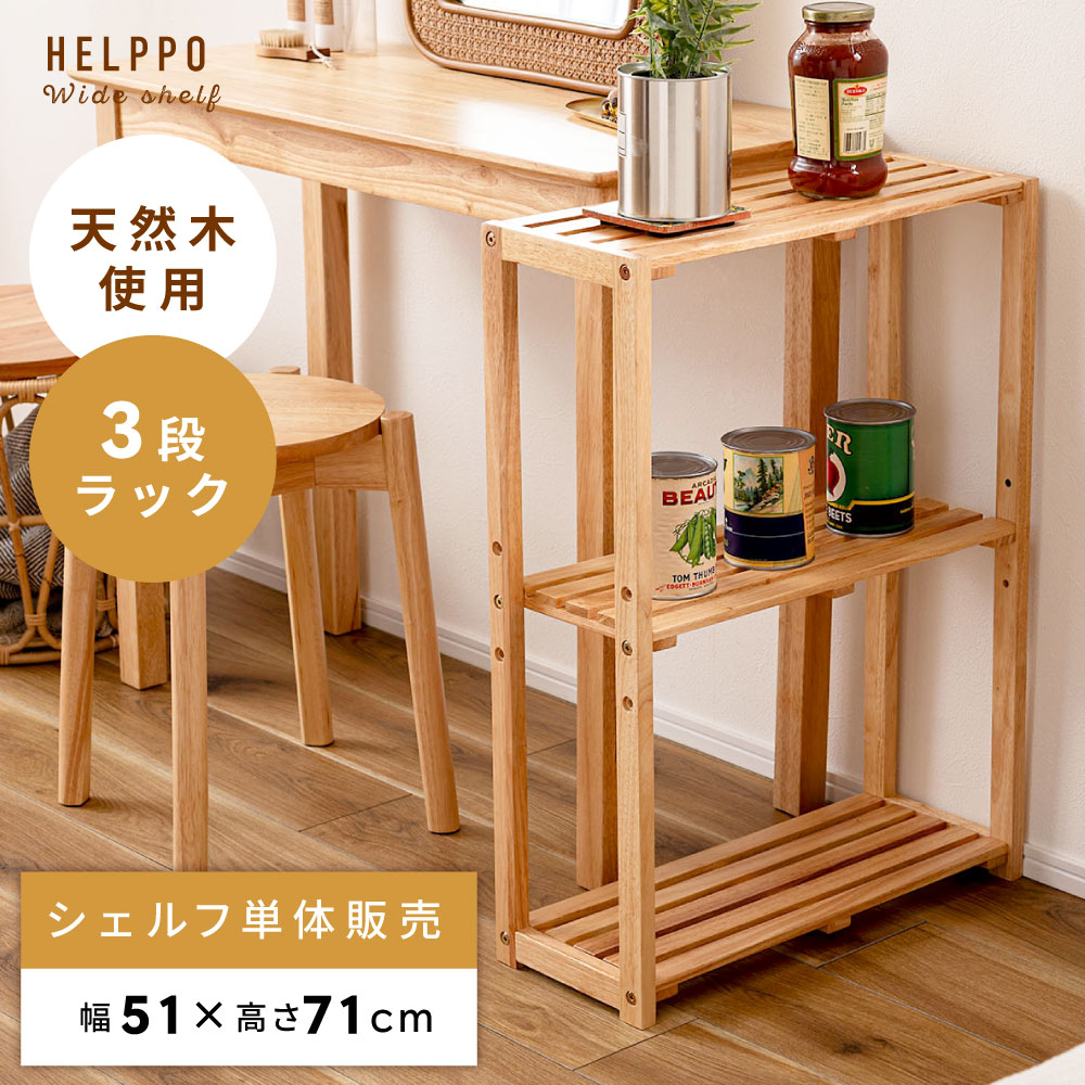 シェルフ 収納棚 収納 オープンシェルフ ワイド 幅広 幅51cm 高さ71cm 木製 天然木 北欧 ナチュラル 北欧ナチュラル 韓国インテリア 韓国風 木目 軽い 軽量 ベージュ 一人暮らし リビング ダイニング 寝室 棚 ラック オープンラック