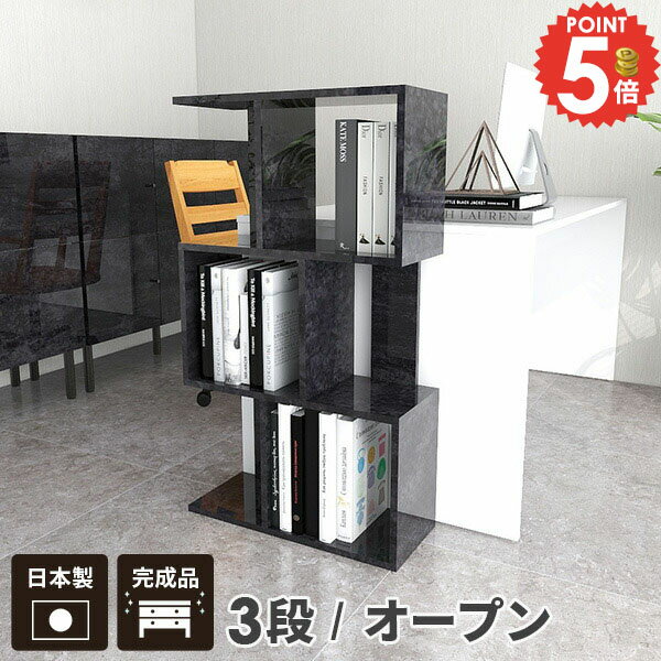 オープンラック 3段 ディスプレイラック おしゃれ スリム 横置き 奥行30cm 本棚 完成品 ディスプレイシェルフ 約幅60 ランドリー収納 オープンシェルフ ぬいぐるみ棚 飾り棚 S字 ジグザグ 大理石風 収納棚 S字ラック 3段ラック シェルフ a4 横長 リビング 鏡面 S字型 北欧 ☆