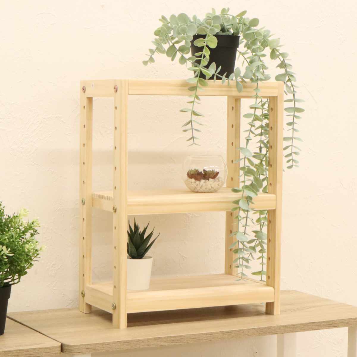オープンラック 3段 天然木 パイン材 幅30cm ( 木製 ラック シェルフ 棚 ウッドラック 収納 飾り棚 ディスプレイ 三段 オープンシェルフ 可動棚 リビング キッチン シンプル )【39ショップ】